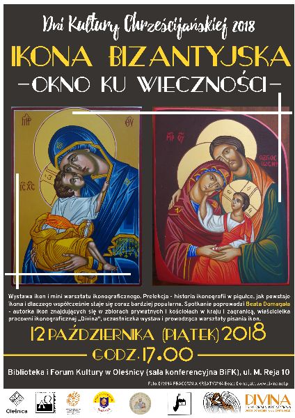 Wystawa prac uczestników warsztatów pisania ikon w Oleśnicy prowadzonych przez pracownię Divina.